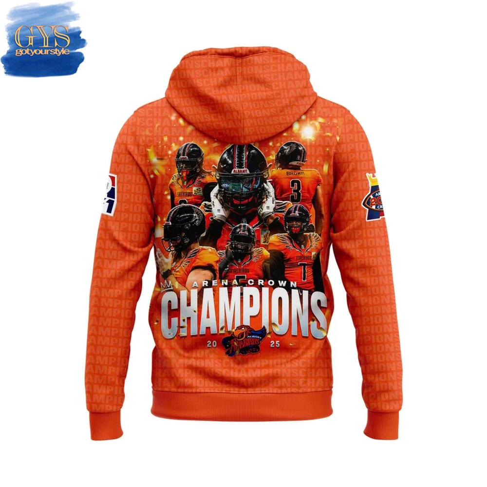 Visit GotYourStyle.com now and order your Albany Firebirds Arena Crown Champions 2025 Limited Edition Hoodie. Don’t miss out on this celebratory piece; order yours today!
